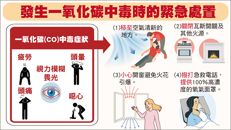▲一氧化碳中毒時的緊急處置。(圖/振興醫院提供)