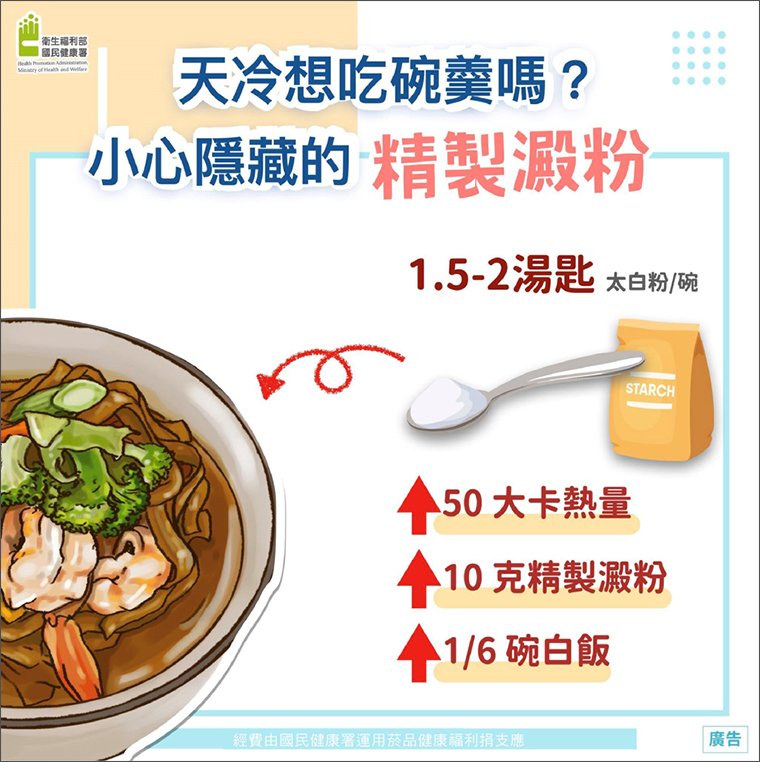 ▲冬天喝羹湯要小心勾芡隱藏精製澱粉危機。(圖/取自「國民健康署」粉絲專頁)