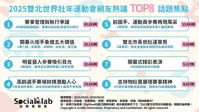 ▲2025雙北世界壯年運動會網友熱議8大話題焦點。(圖/《Social Lab社群實驗室》提供)