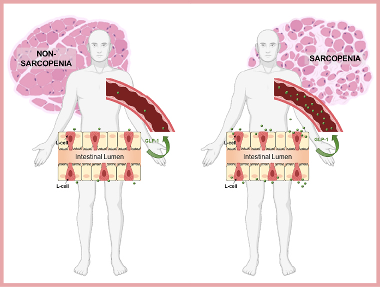 GLP-1(Glucagon-like peptide-1)是腸道在進食後自然分泌的荷爾蒙,具有促進胰島素分泌、調節血糖的作用,廣泛應用於糖尿病與減重治療。臺北榮總急診醫學部主任黃獻皞表示,其研究團隊針對 145 位平均年齡逾 80 歲的急診患者進行臨床分析發現,即使在空腹狀態下,肌少症患者的血中 GLP-1 濃度仍異常升高,平均達 1021.5微克/毫升(pg/mL),為非肌少症者的近3倍。