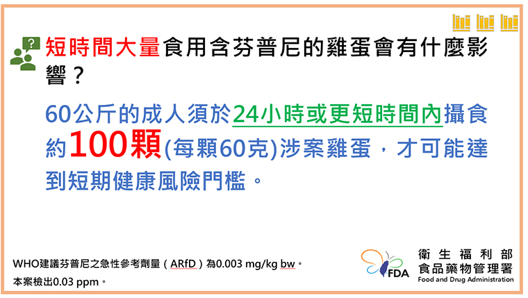 ▲短時間大量食用含芬普尼的雞蛋會有什麼影響?(圖/食藥署提供)