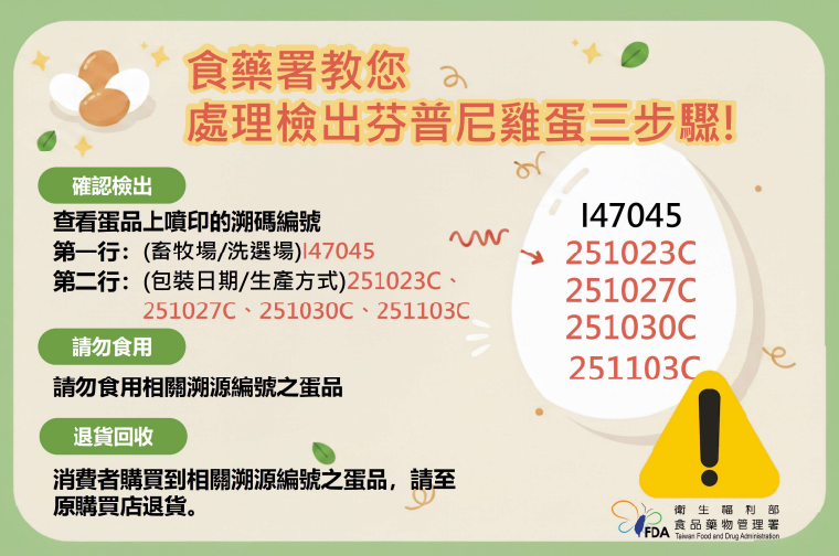 15萬顆毒蛋已「全吃下肚」!芬普尼蛋溯源碼曝光 業者急下架僅攔截到部分批次