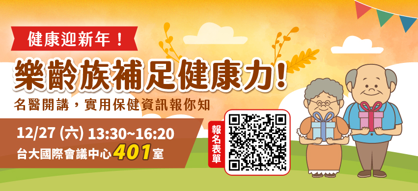 活動時間從下午1點半至4點半,下午1點即開放入場,講座地點位於台大醫院國際會議中心401室(台北市徐州路2號4樓)。名額有限,歡迎有興趣的民眾把握機會,儘速完成報名。
