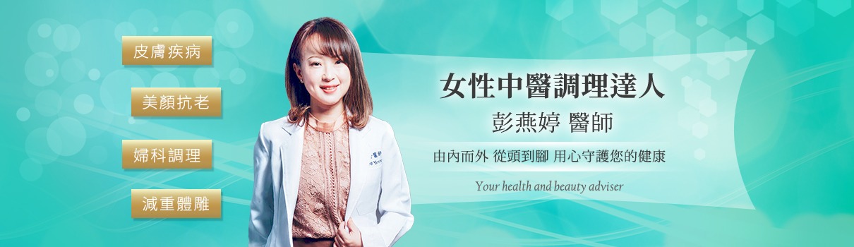 以人為本×推廣新時代養生概念 彭醫師生長自醫學世家,從小在父親於新竹縣竹東開設的中醫診所及蔘藥行裡耳濡目染。成長時期在加拿大溫哥華留學就讀,其後轉往東京青山學院大學研讀,經歷多國歷練後回台接受嚴格的中醫訓練,以優異成績考取台灣中醫師執照,並在職業期間不斷學習,順利取得廣州中醫藥大學臨床醫學碩士學位。 時常於媒體將多年來於日本,韓國,及中國等地研究關於『皮膚疾病』,『減重』,『女性調養』,『中醫美容』等疾病及養生相關議題分享於大眾,認為透過天然植物具有的獨特功效,可幫助人們治療疾病,美容瘦身,改善健康或抗老化。 期許結合中醫傳統醫學的智慧,以更方便,更科學,更有效的方法提供患者健康及幸福的生活。