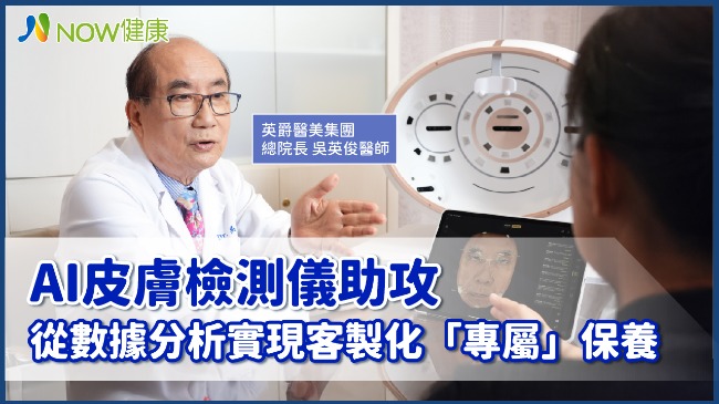 • 與亞洲華人皮膚的大數據資料庫進行比對,透過AI分析系統,提供皮膚年齡和健康評分,以及治療後預測