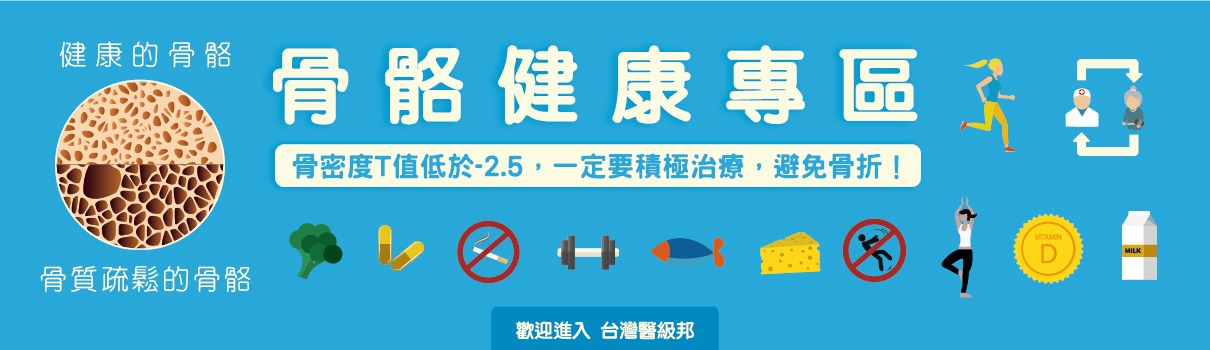 骨質疏鬆症是全球第二大的重要流行病,根據中央健康保險署資料顯示,台灣婦女發生骨折的風險高於乳癌、卵巢癌和子宮癌風險的總和;男性骨折風險高於前列腺癌。若骨密度T值低於-2.5,一定要積極治療,遵循醫囑,並且避免骨折的情況發生!