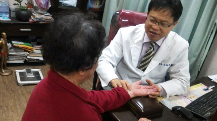 ▲張賜興醫師診治患者翁老太太的坐骨神經痛,以中醫辯證結合內外調理方式來治療。