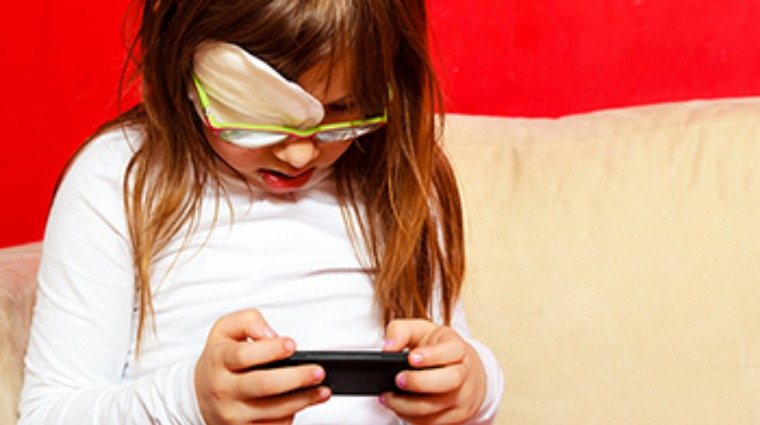 ▲家長應注意孩子使用3C的時間,及早矯正孩子視力,並協助養成正確用眼習慣。
