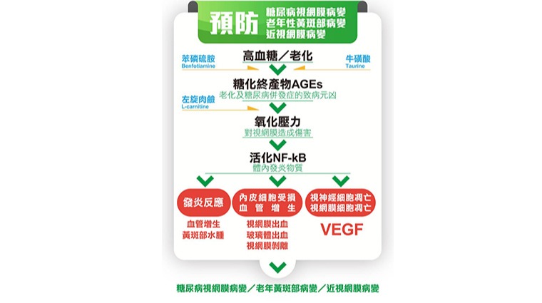 另外,中年人的糖尿病視網膜病變也很常見,根據統計,罹患糖尿病長達15年以上時,約有8成的人會有程度不一的視網膜病變,尤其是血糖、血壓控制不良或有腎病變的患者,罹患糖尿病視網膜病變的機率更高,病情也會比較嚴重;由於血管內皮細胞生長因子抗體(如anti-vascular endothelium growth factor, anti-VEGF)的問世,讓糖尿病黃斑水腫得到更好的治癒機會。