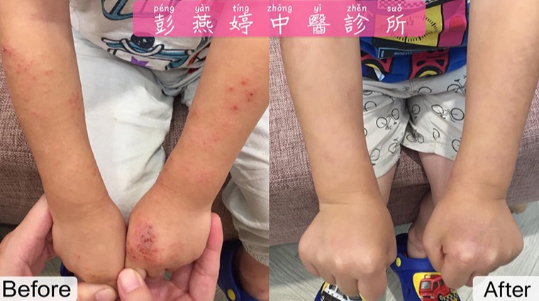 中醫治療至少約三個月,內服中藥調理好體質外,在搭配診所調製的中藥外敷藥粉或藥浴浸泡塗抹,持續治療後症狀都減輕許多甚至痊癒。
