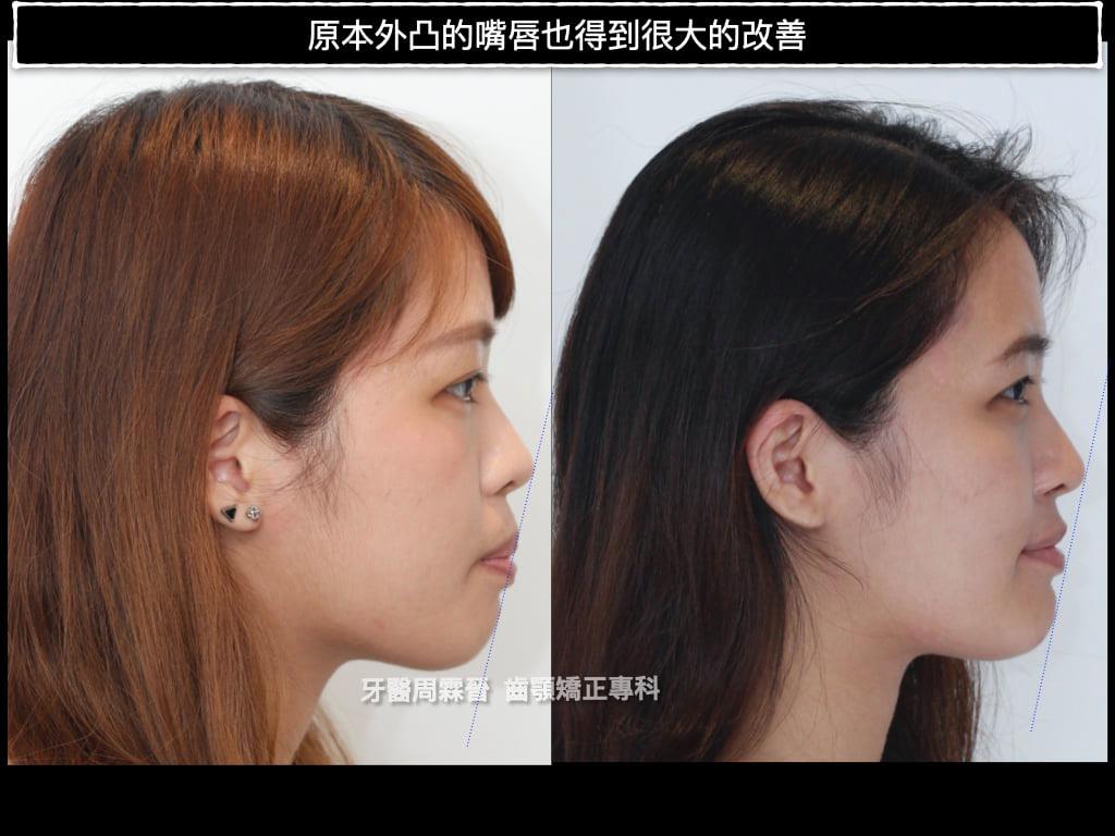 原本外凸的嘴唇也得到很大的改善
