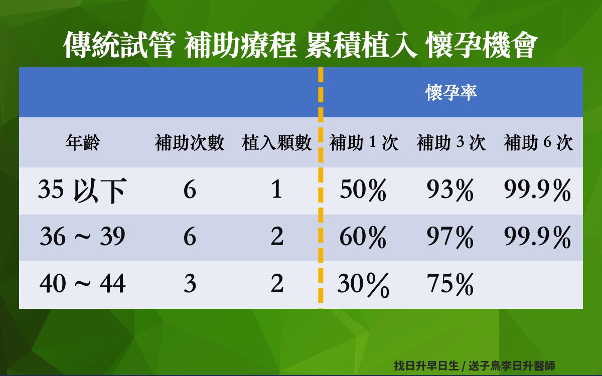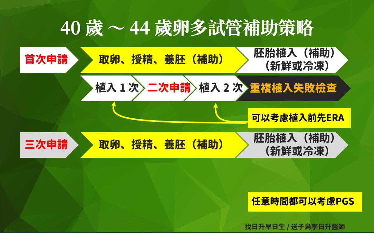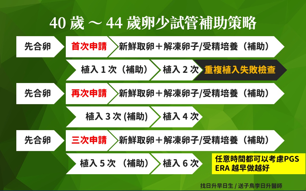 40 ~ 44歲因為補助只有三次,一次只能植入2顆,所以策略上會調整一下。
