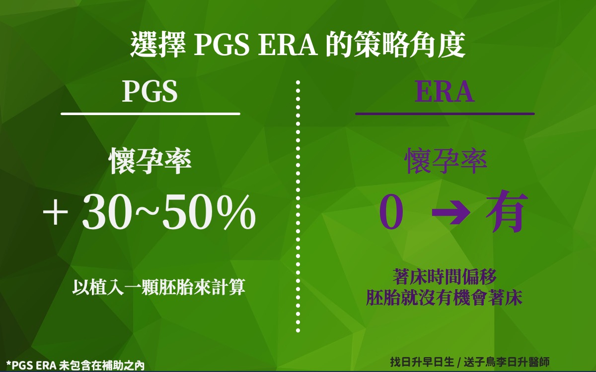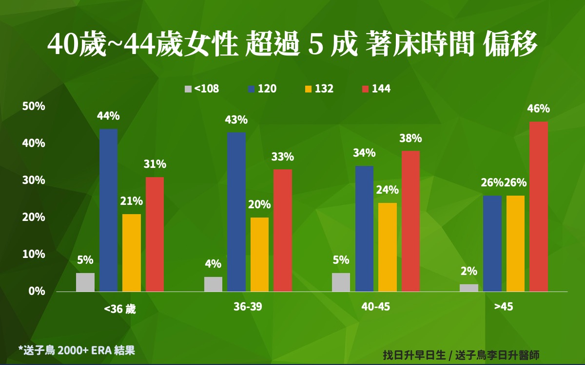 高齡女性,我認為ERA是決勝負的重點,因為超過40歲,有超過一半的女性胚胎著床時間有偏移的現象,囊胚植入的時間需要晚一天才有機會著床。