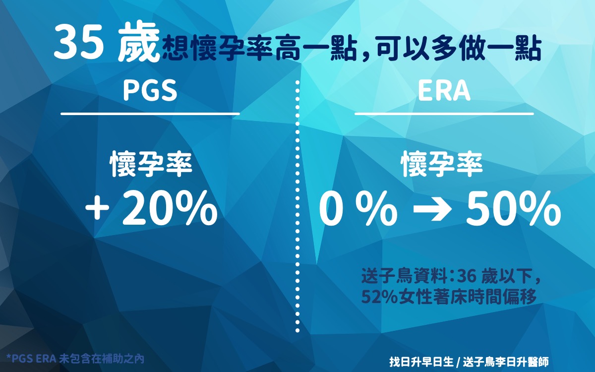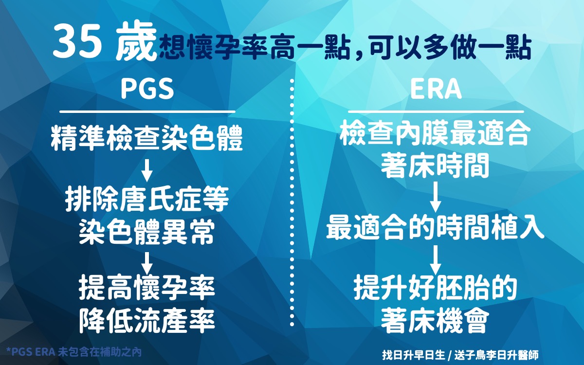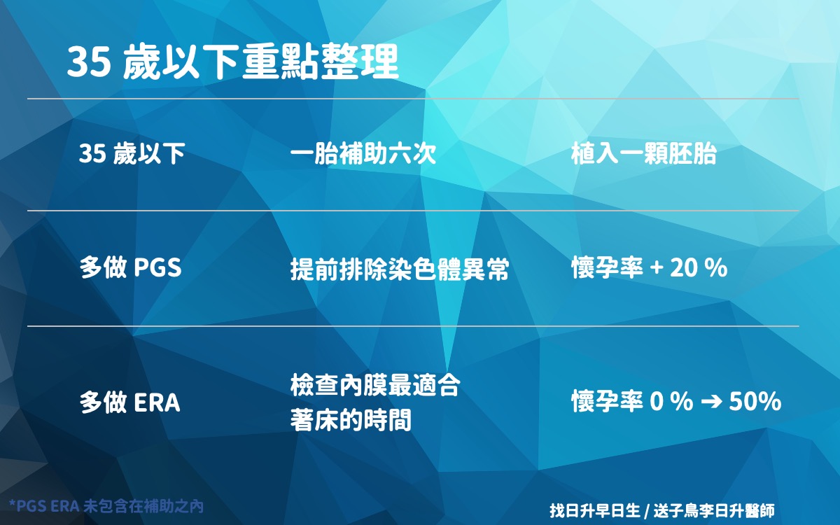 做好做滿,就是運用政府補助,當作是多的,其他的部分譬如 PGS 跟 ERA都做,就可以提高每一次植入懷孕的機會。