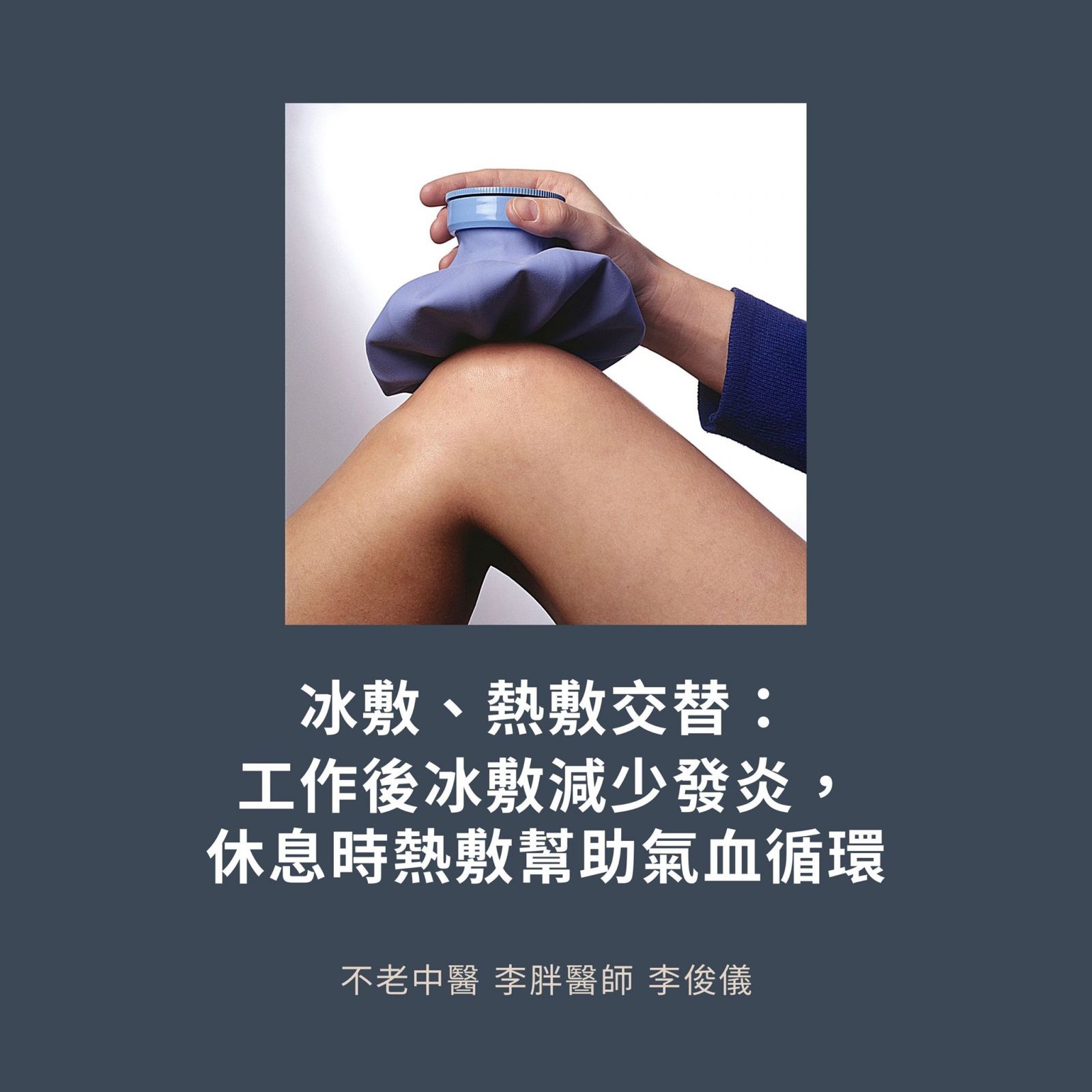 2. 冰敷、熱敷交替,工作後冰敷減少發炎,休息時熱敷幫助氣血循環