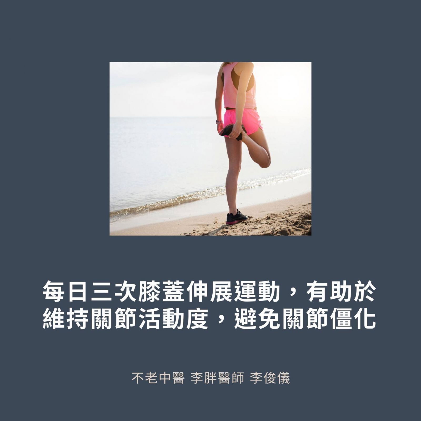 3. 每日三次膝蓋伸展運動,有助於維持關節活動度,避免關節僵化