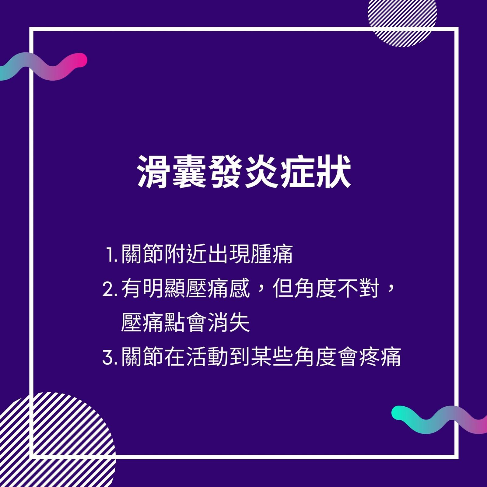3.關節在活動到某些角度會疼痛(只有某些角度擠壓到滑囊才會痛)