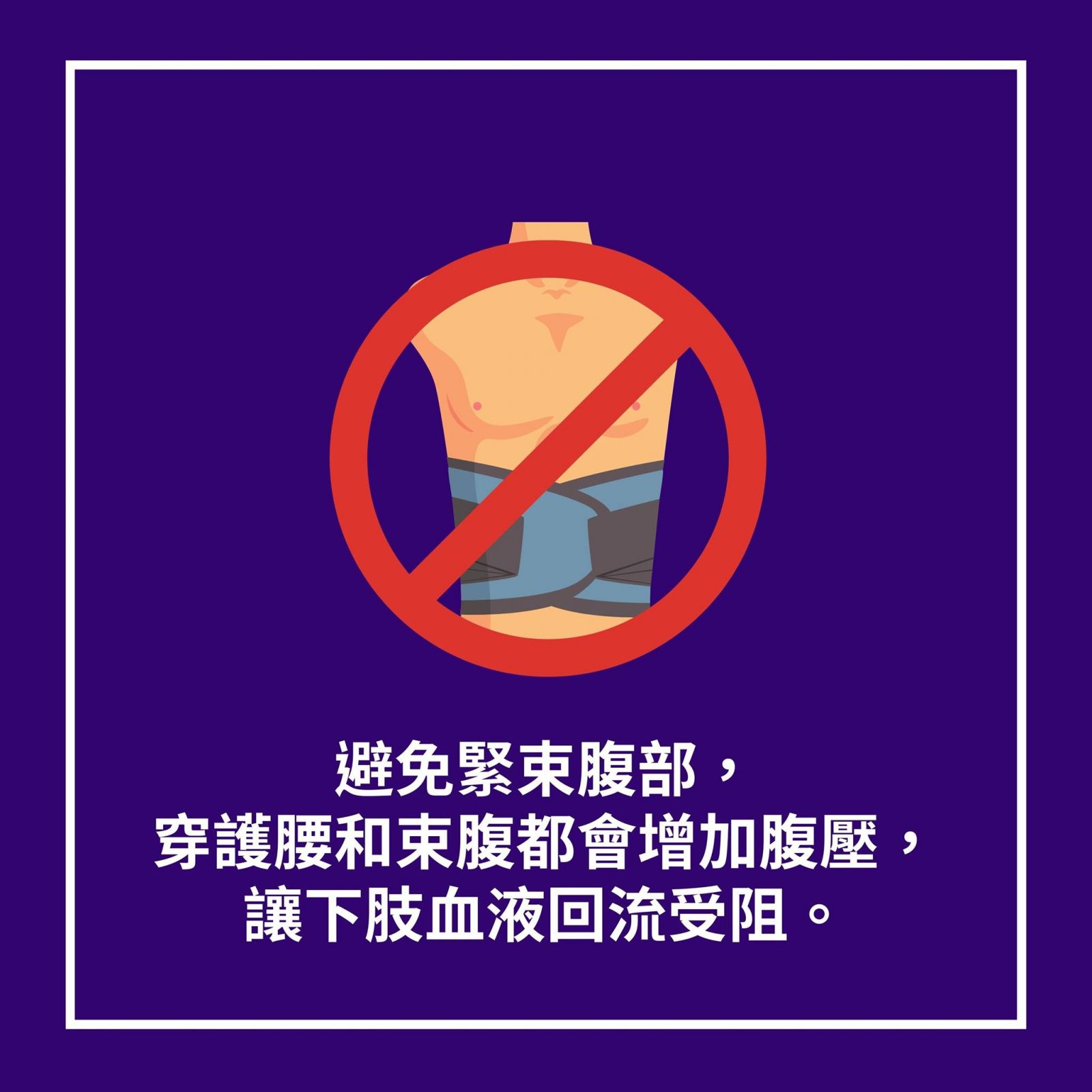 2. #避免緊束腹部,穿護腰和束腹都會增加腹壓,讓下肢血液回流受阻。