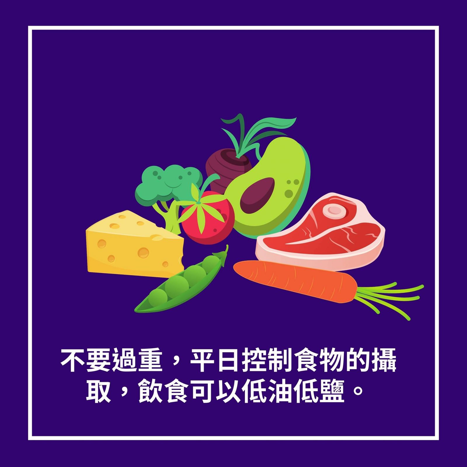 4. #不要過重,平日控制食物的攝取,飲食可以低油低鹽。