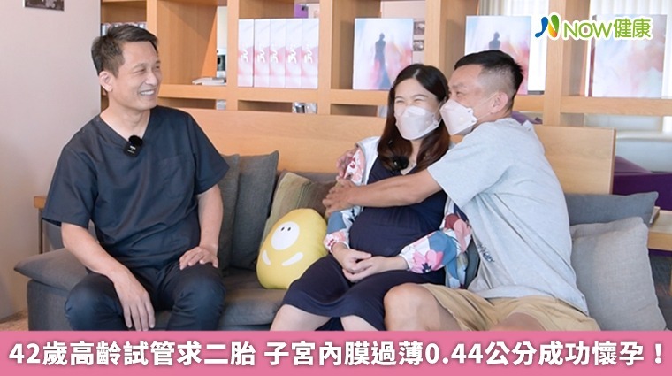 【NOW健康 林郁敏/台北報導】高齡想懷二寶的彭小姐,在生產第1胎之後備孕5年,都遲遲等不到好消息,42歲的她,經朋友介紹,嘗試送子鳥生殖中心獨創的三代普拉斯試管嬰兒技術,期間經歷了8個月的波折、1次植入失敗後,子宮內膜僅4.4mm的彭小姐,最終順利植入1顆PGS正常胚胎且成功受孕,現已有32周的身孕,彭小姐的主治醫師賴興華醫師表示,她是目前送子鳥治療過子宮內膜最薄的成功案例!