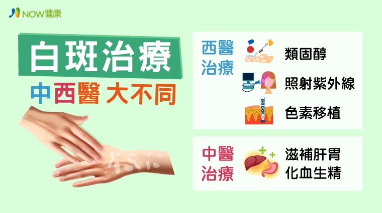 中醫師聶美華說明,俗稱「白癲風」的白斑症是1種色素退化疾病,無關年齡或種族都有可能罹患,發病的原因複雜,可能與遺傳、過度曝曬、免疫功能紊亂、情緒抑鬱、精神緊張、生活壓力、內分泌失調、皮膚外傷、環境汙染、內服藥物等有關。西醫認為,當身體負責製造黑色素的細胞失去功能或死亡就會形成白斑,恐是自體免疫失調所引起,因此治療上多以類固醇、照射紫外線、色素移植等方式進行,但這些僅是治標並不治本。