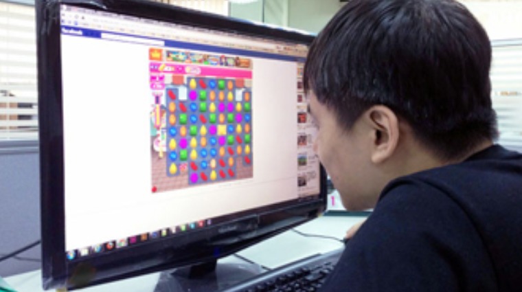 時下最夯的手機遊戲軟體「CANDY CRUSH」,黃、綠、紫、紅、藍等五顏六色水果從天而降,讓人眼花撩亂,玩得樂此不疲。智慧型手機推陳出新,除了影像更清晰,還可下載各種遊戲軟體,愈來愈多退休族利用玩遊戲軟體來動動腦筋,預防老年痴呆,但部分長輩就發現,近視眼鏡度數好像愈來愈不夠,視野變昏暗,眼科醫師提醒,沈迷於手機遊戲軟體,小心提早出現白內障及老花眼等問題。(2013-05-17 NOW健康 王宇仁/台北報導)