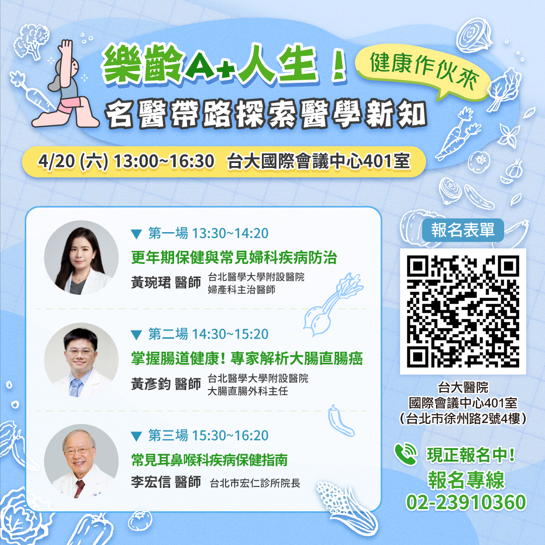 名醫開講-免費健康公益講座,由臺北醫學大學校友會教育基金會、中華民國防高血壓協會共同支持主辦,每期邀請不同科別之專業醫師出席,傳達正確的保健新知,開放民眾免費報名參加,歡迎揪團預約報名喔!