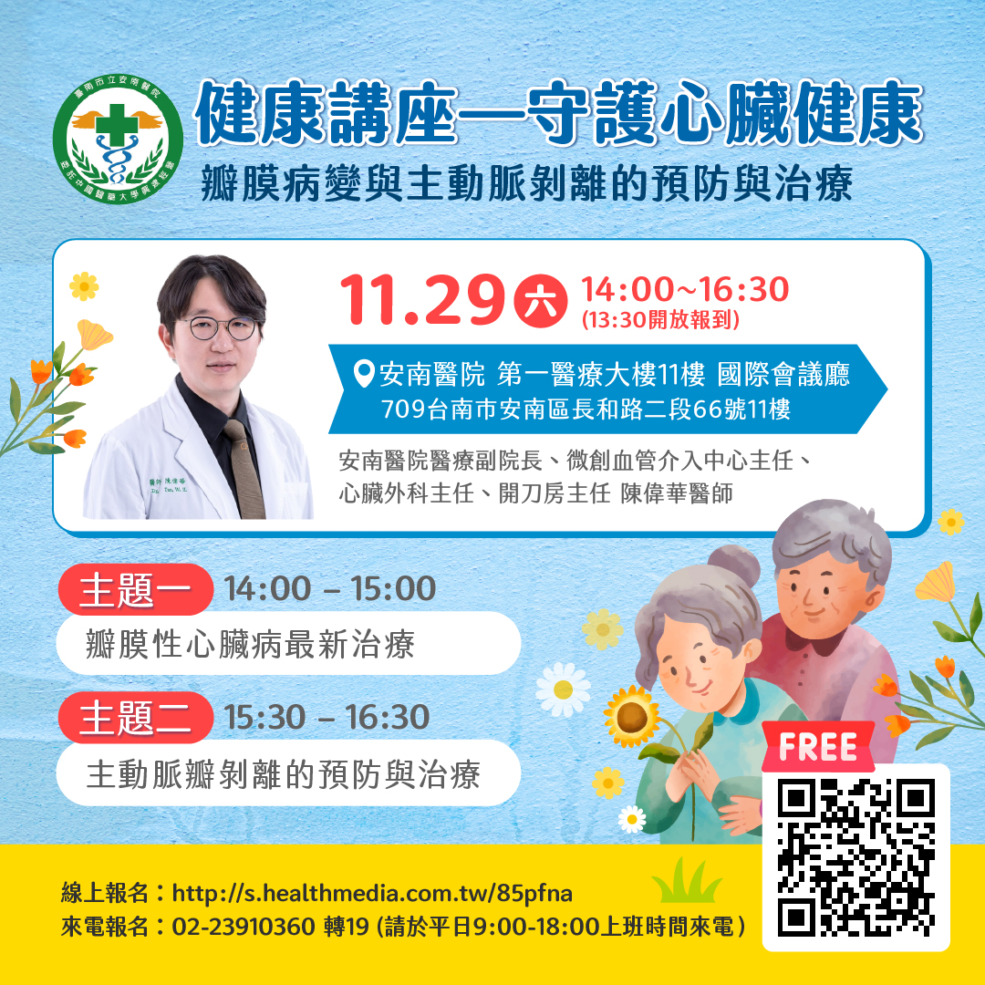 【已截止】11/29(六)活動名稱:守護心臟健康,瓣膜病變與主動脈剝離的預防與治療