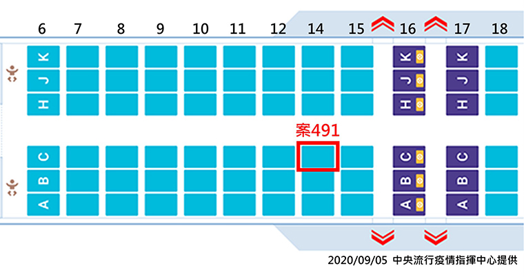 ▲第491例來台時搭乘班機座位。(圖/中央流行疫情指揮中心提供)