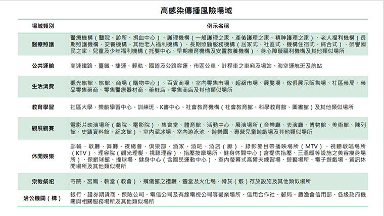 ▲須戴口罩的8大類場所。(圖/中央流行疫情指揮中心提供)
