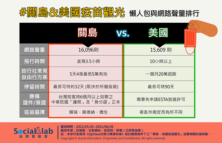 ▲關島&美國疫苗觀光懶人包與網路聲量排行。(圖/OpView社群口碑資料庫提供)