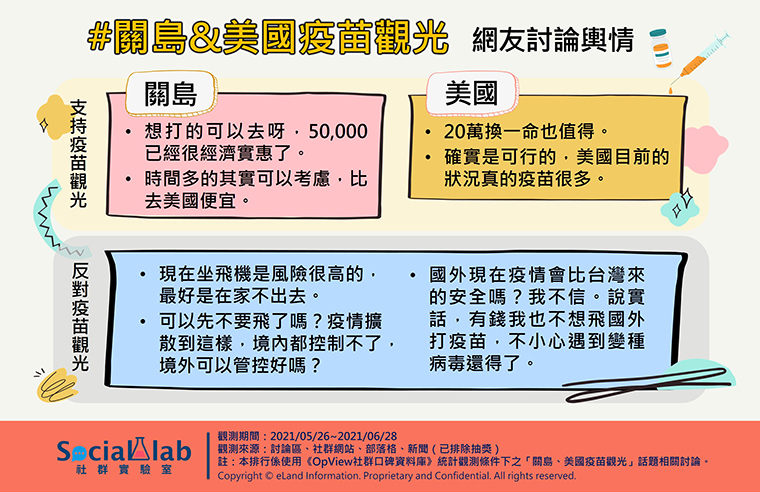 ▲關島&美國疫苗觀光網友討論輿情。(圖/OpView社群口碑資料庫提供)