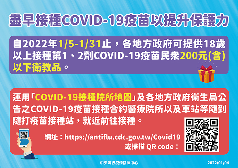▲指揮中心建議地方政府可針對施打疫苗者致贈小禮品。(圖/中央流行疫情指揮中心提供)