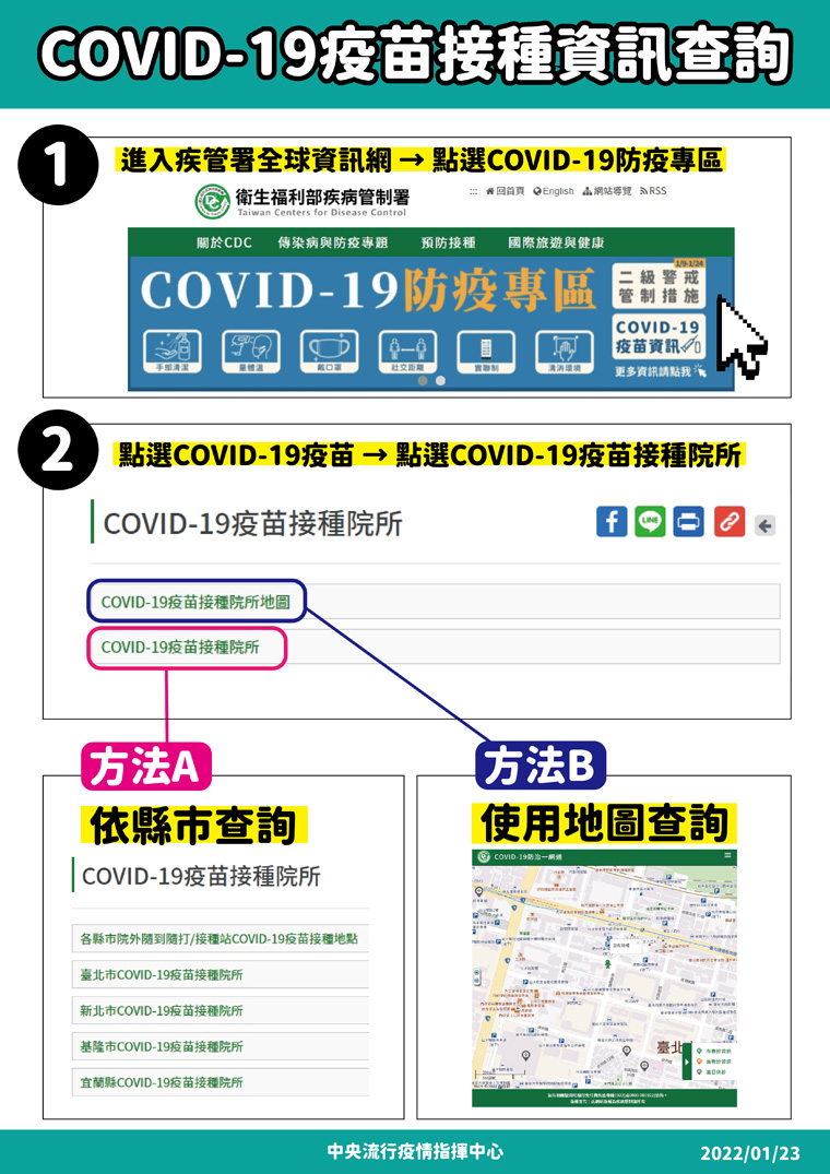 ▲如需尋找基礎劑第1、2劑接種資訊,可照圖片索引的方式找到資訊。(圖/中央流行疫情指揮中心提供)