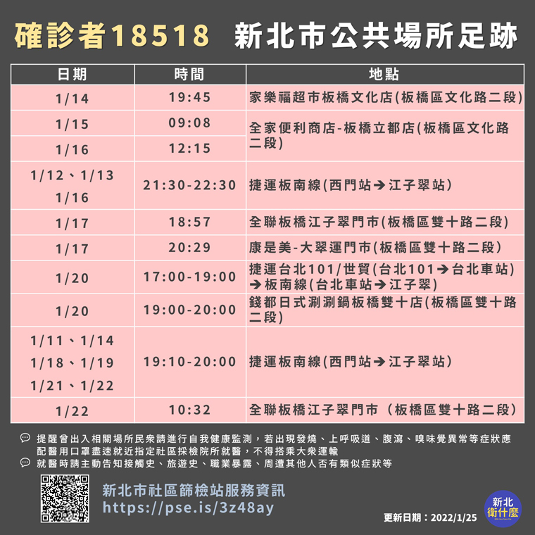 ▲新北市公布確診者足跡。(圖/截取自新北衛什麼)