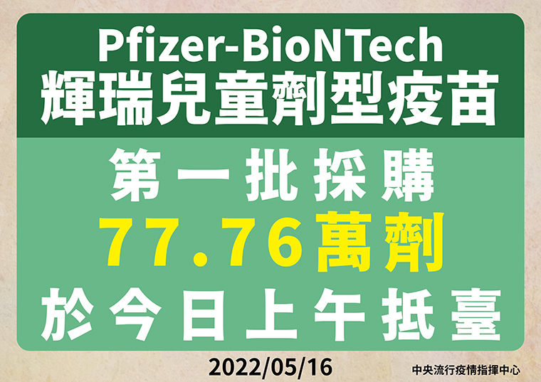 指揮中心指出,已於今年4月28日與香港復星公司及德國BioNTech公司簽署COVID-19疫苗供應合約,並與美國Pfizer公司及德國BioNTech公司簽署兒童疫苗補充合約,預定供應220萬劑兒童劑型及180萬劑成人劑型疫苗做為基礎劑、基礎加強劑或追加劑使用,並視需求擴充400萬劑成人劑型疫苗。