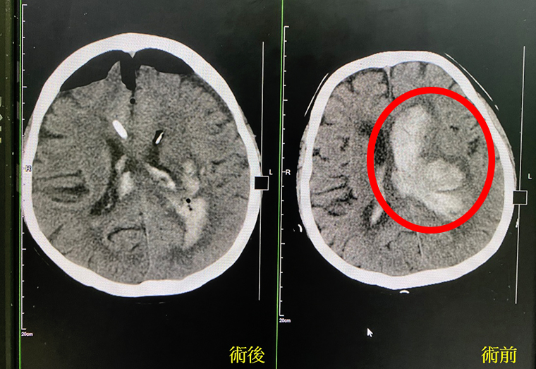 ▲電腦斷層照,右圖紅圈處為血塊、左圖為術後照。(圖/長安醫院提供)