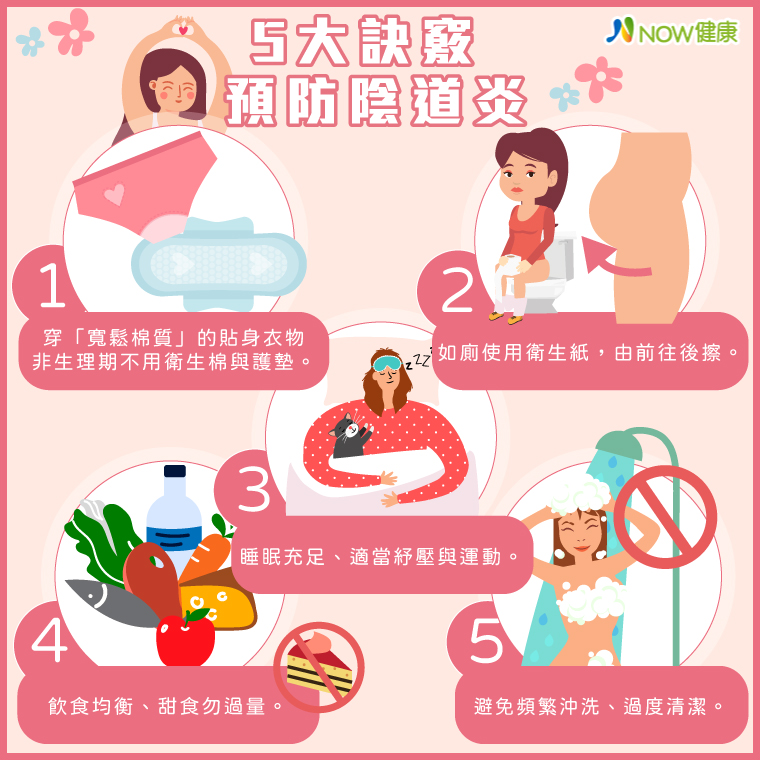 ▲針對預防陰道炎,台北慈濟醫院婦產科主治醫師嚴絢上提出5大要訣˙。(資料來源/嚴絢上醫師;圖/NOW健康製作)