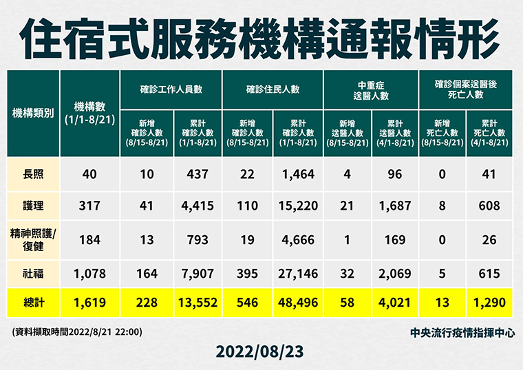 ▲住宿式機構通報情形。(圖/中央流行疫情指揮中心提供)