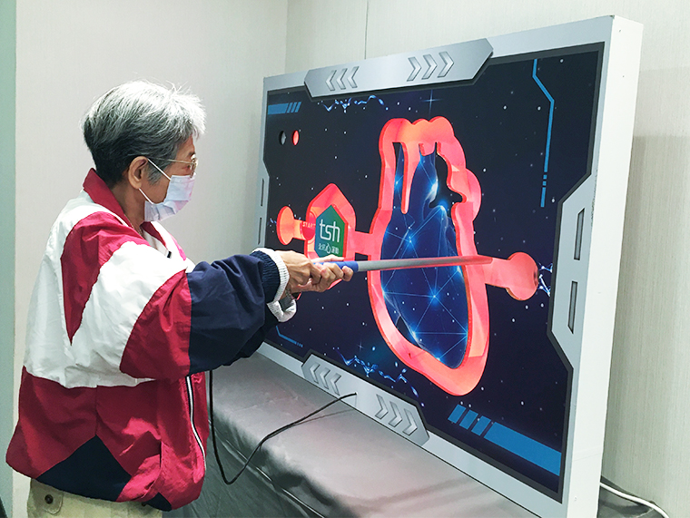 當天健康公益講座還設有超好玩的「電流急急樂體驗區」,拿起電流急急棒,能夠順利通過像心臟形狀的彎曲路線,且過程中都沒有碰到壁面,順利抵達終點時會亮綠燈,表示挑戰成功。這也提醒大家,應主動留意自己的心血管健康,心臟血液都要能穩定流動,健康才不會亮紅燈。