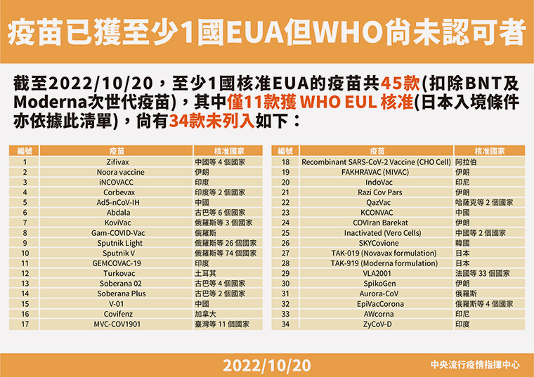 ▲世界各國皆有獨立開發之疫苗,且並非所有疫苗都通過WHO認證。(圖/中央流行疫情指揮中心提供)
