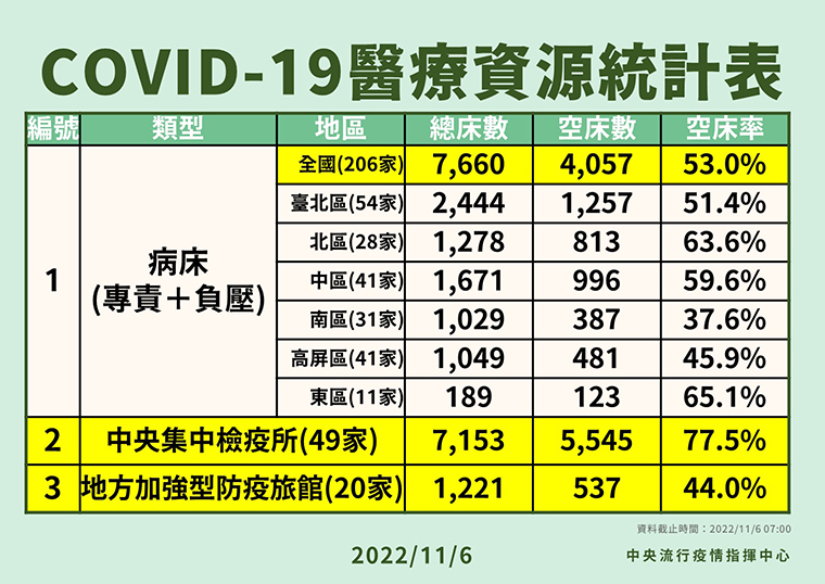 ▲醫療資源統計表。(圖/中央流行疫情指揮中心提供)