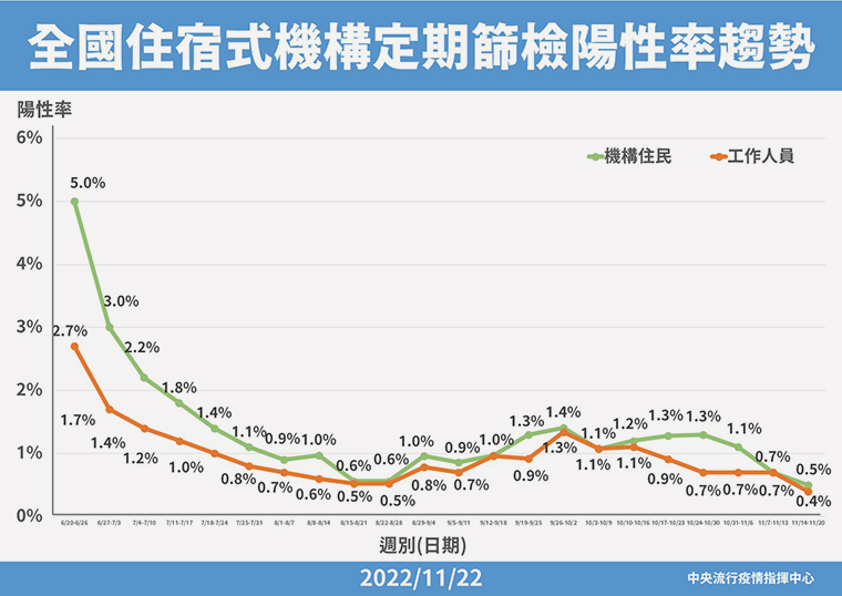 ▲近期的長照機構陽性率創下新低點,指揮中心決定修改快篩頻率。(圖/中央流行疫情指揮中心提供)