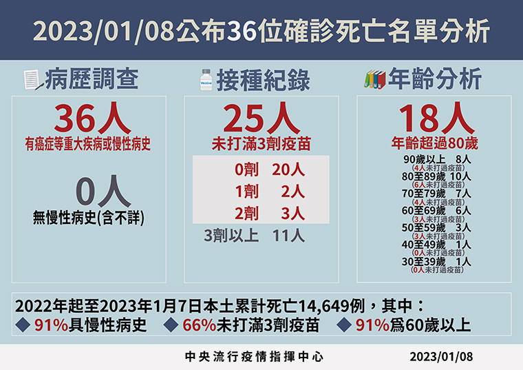 ▲36例死亡個案中,有多達20人從未接種過疫苗。(圖/中央流行疫情指揮中心提供)