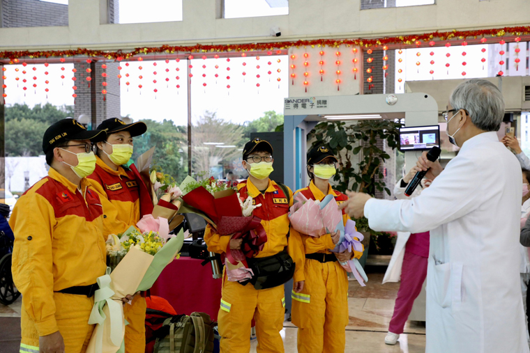 【NOW健康 葉立斌/台北報導】台北榮總派遣4名醫護人員,隨同台北市消防局搜救隊至土耳其協助救災,15日下午5時許返抵醫院,陳威明院長特別率領同仁熱烈歡迎,擁抱感謝4位英雄在災區惡劣的環境。