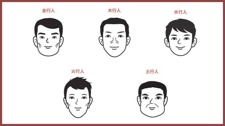 首先這裡就要提到面相學裡面,屬於比較傳統的「五行相法」。五行相法是1種比較古老的相法,也比較抽象難懂,它把人歸類為金木水火土,5種五行,再根據這5種五行,分類以及判斷這些人的性格,分析出他們彼此之間的關係。