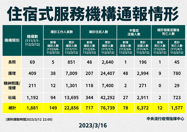 ▲住宿式服務機構通報情形。(圖/中央流行疫情指揮中心提供)