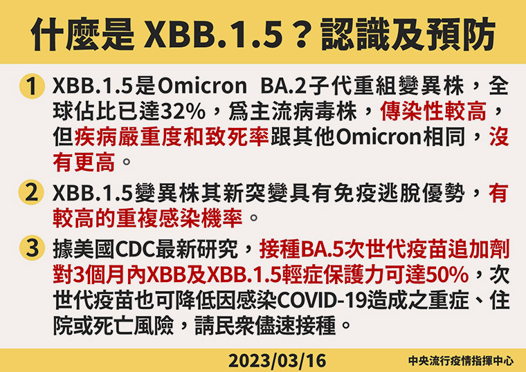 ▲指揮中心解析何謂XBB.1.5。(圖/中央流行疫情指揮中心提供)