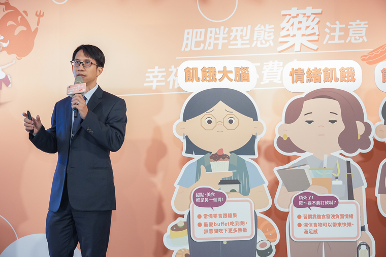 據國外最新研究指出,肥胖型態可分為4種,而有5成肥胖民眾為合併「飢餓大腦」、「情緒飢餓」兩種型態的混合型,難以單靠意志力達到減重成效。台灣肥胖醫學會林文元理事長進一步解釋,民眾首先要「認知」到自己的肥胖型態,了解型態之後,遵循「醫療」用藥建議,再透過飲食、運動等「行為」落實全面的體重管理策略。
