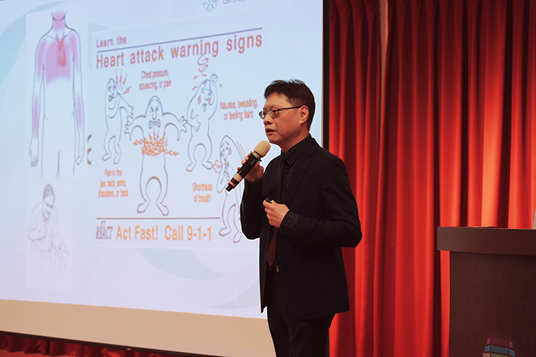 ▲高雄長庚醫院心臟內科副主任鍾昇穎說明,心絞痛是一種因冠狀動脈狹窄導致血流不足,心肌缺氧所引起的胸痛現象。(攝影/詹舒婷)